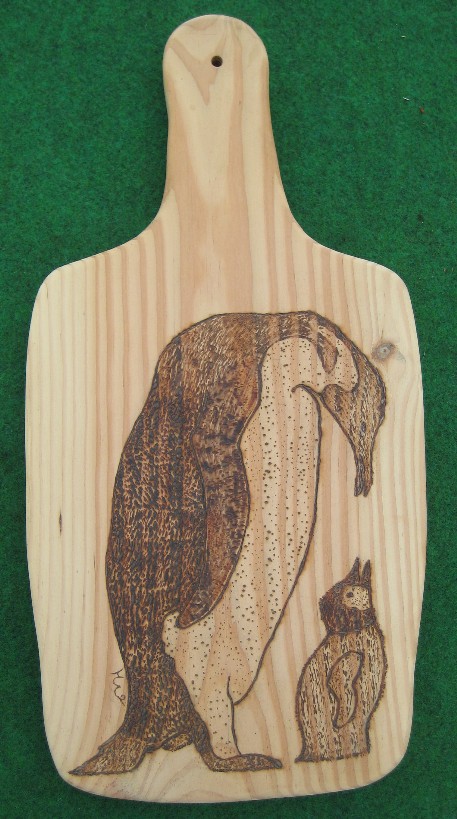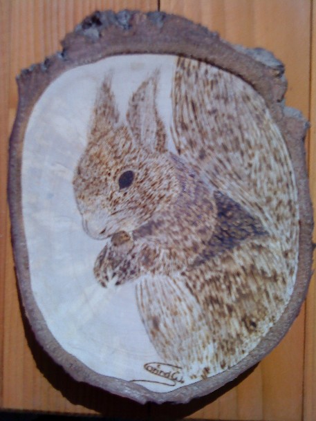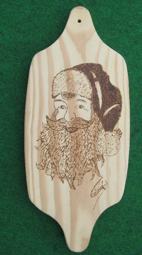 Ein dekoratives Hackbrett mit Brandmalerei.